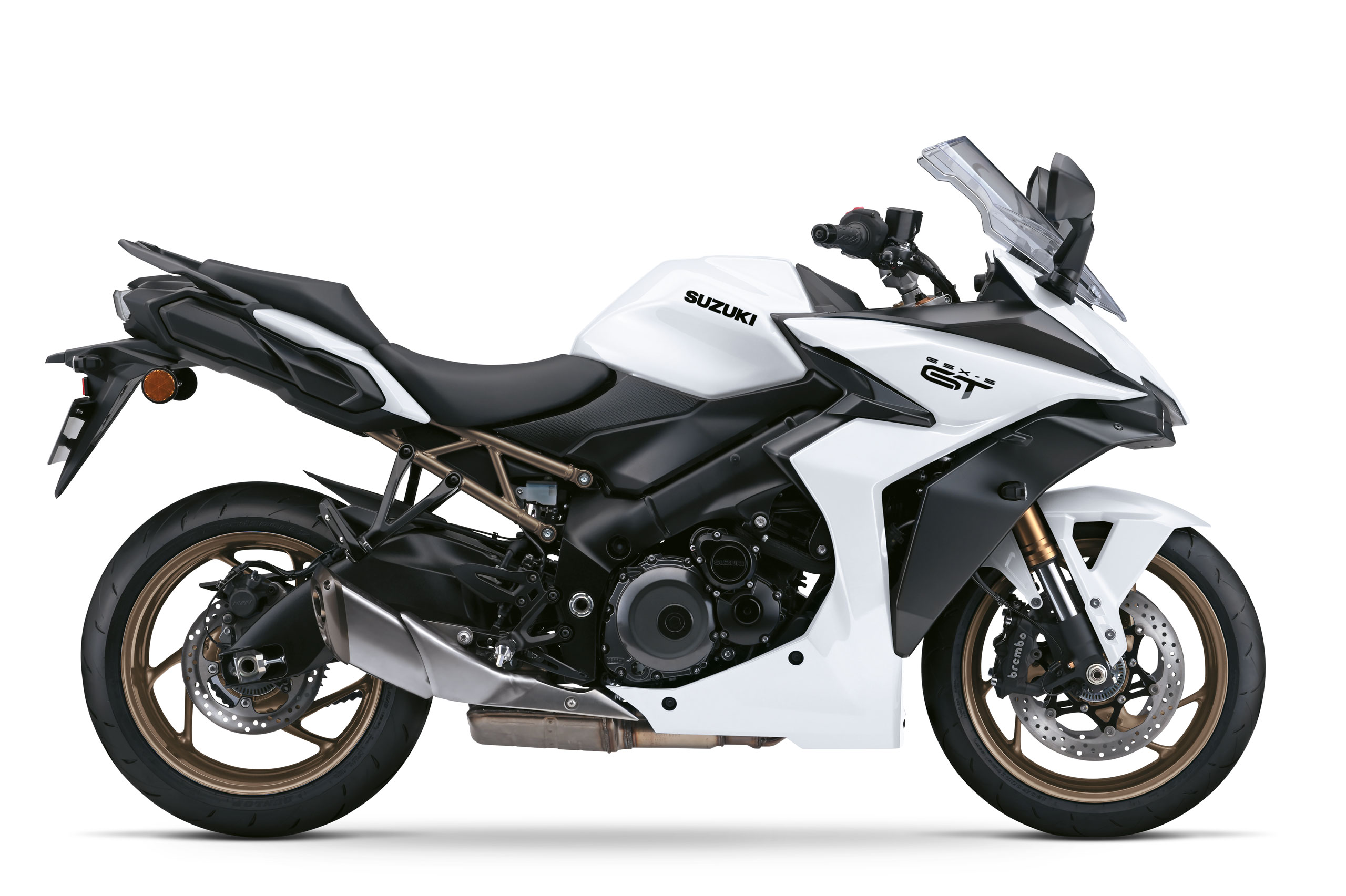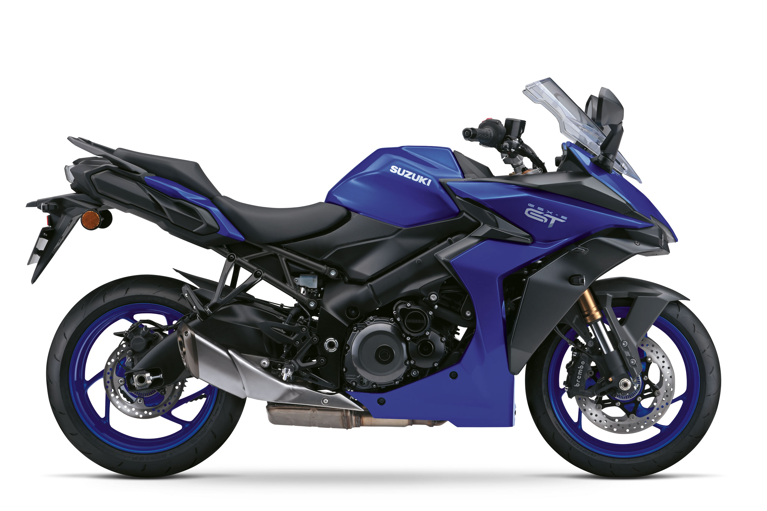 Suzuki presenteert met trots de Suzuki GSX-S1000 GT: een Grand Tourer die de indrukwekkende prestaties en agressieve stijl van de eerder geïntroduceerde GSX-S1000 combineert met geavanceerde technische en elektronische functies. De GSX-S1000 GT trekt de aandacht met zijn gestroomlijnde front, voorzien van horizontaal geplaatste LED-koplampen en positieverlichting.